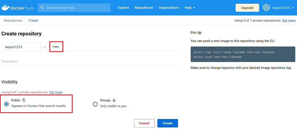 - 위에서 생성한 docker image파일을 docker hub에 push한다.