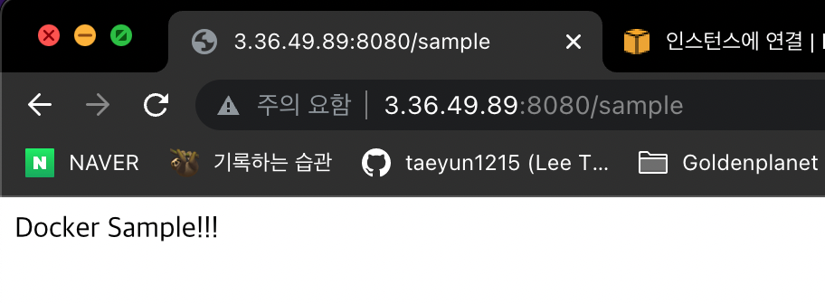 - https://3.36.49.89:8080/sample를 처음에는 입력했는데 Error parsing HTTP request header 오류가 발생하였다.