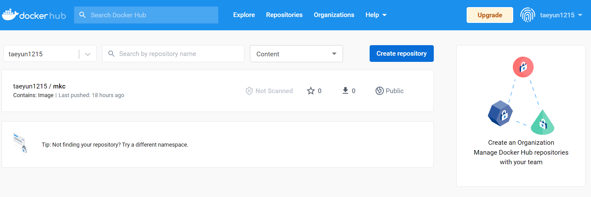 - 11번까지 하였다면 docker hub에 docker image를 push까지 한것이다.