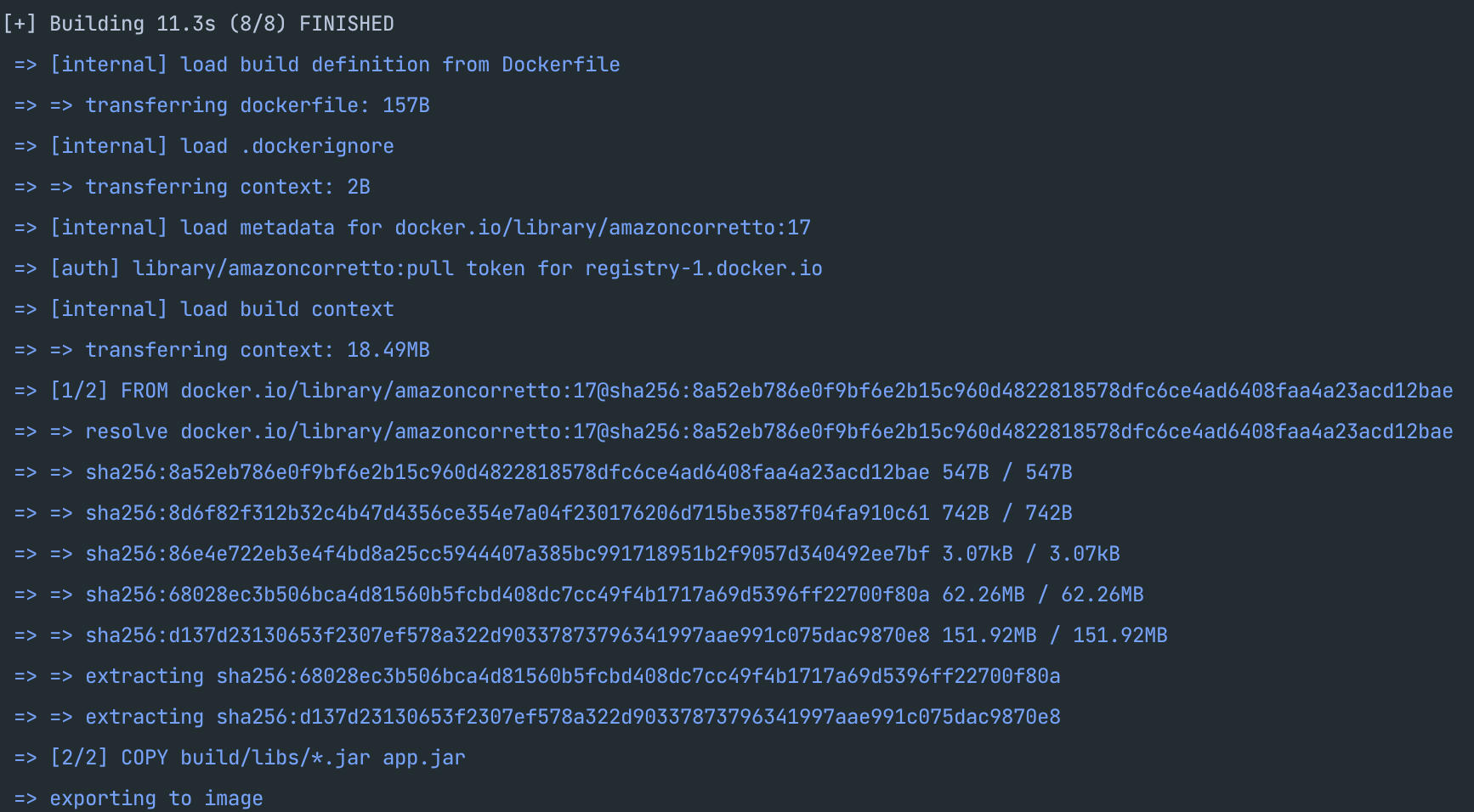 - intellij에 terminal에서 ./gradlew build -x test를 입력해준다.