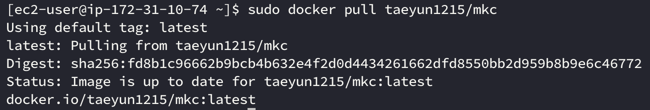- aws ec2 서버에 docker hub에 존재하는 docker image 파일을 pull 받아온다.