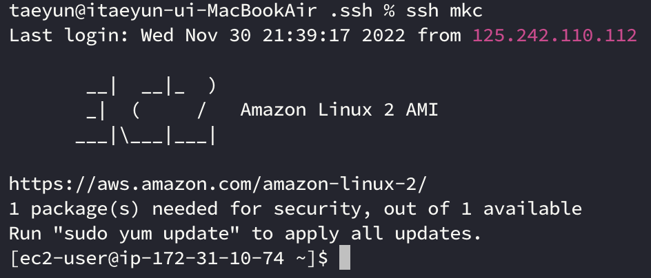 - User → 기본적으로 ec2 접속에 이름은 ec2-user이다.
