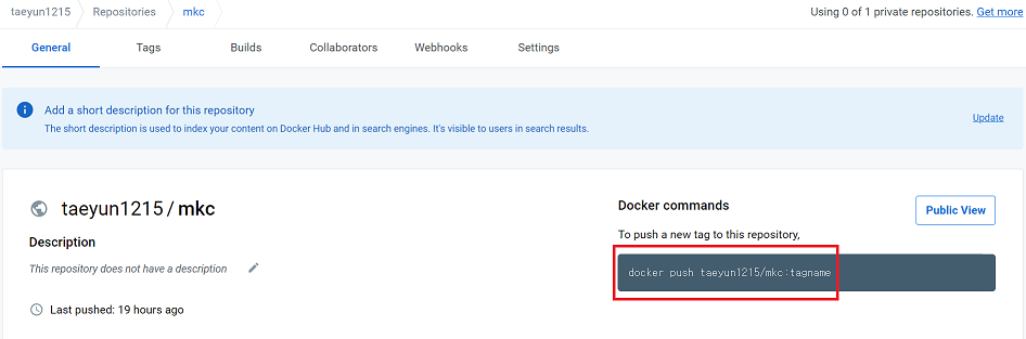 - 위에서 생성한 docker image파일을 docker hub에 push한다.