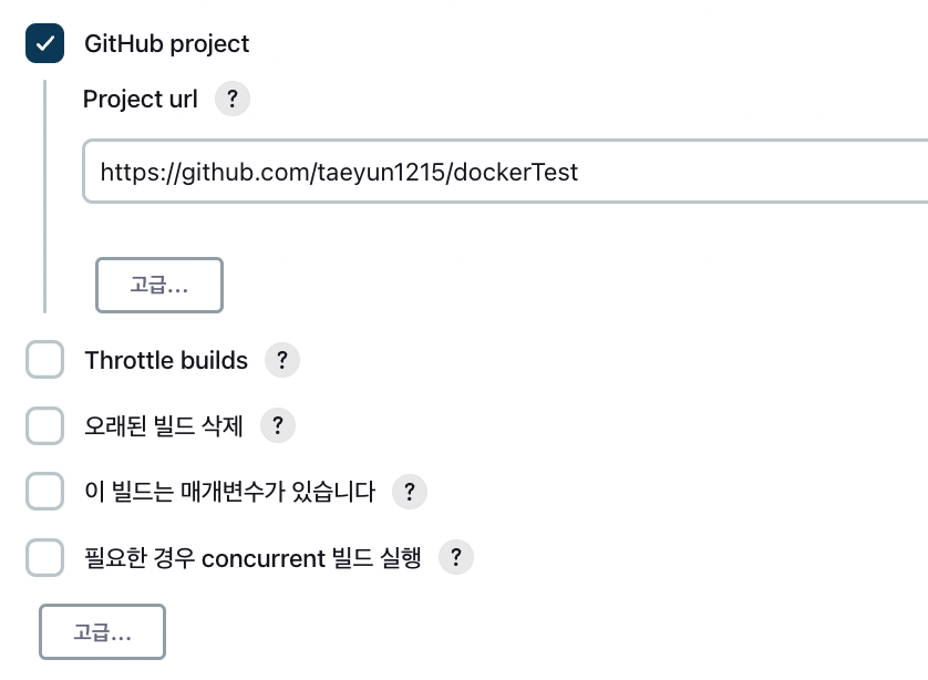 - 나와 같은 경우에는 USERNAME, PASSWORD로 두었는데 그렇게 되면 밑에 빌드 진행한 후 동작할 명령어도 똑같이 입력해줘야함.
