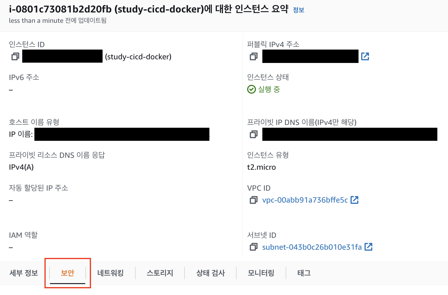 - 마찬가지로 위 링크를 참고하되 이름 및 태그를 study-cicd-jenkins로 두었다.