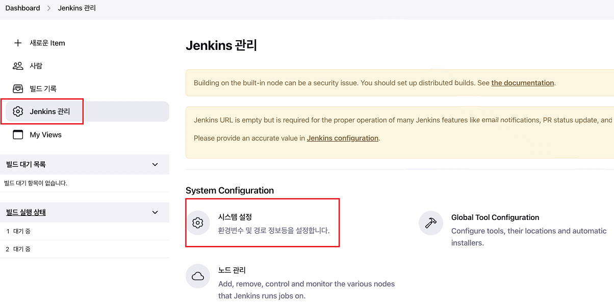 - jenkins 메인페이지 → jenkins 관리 → Global Tool Configuration