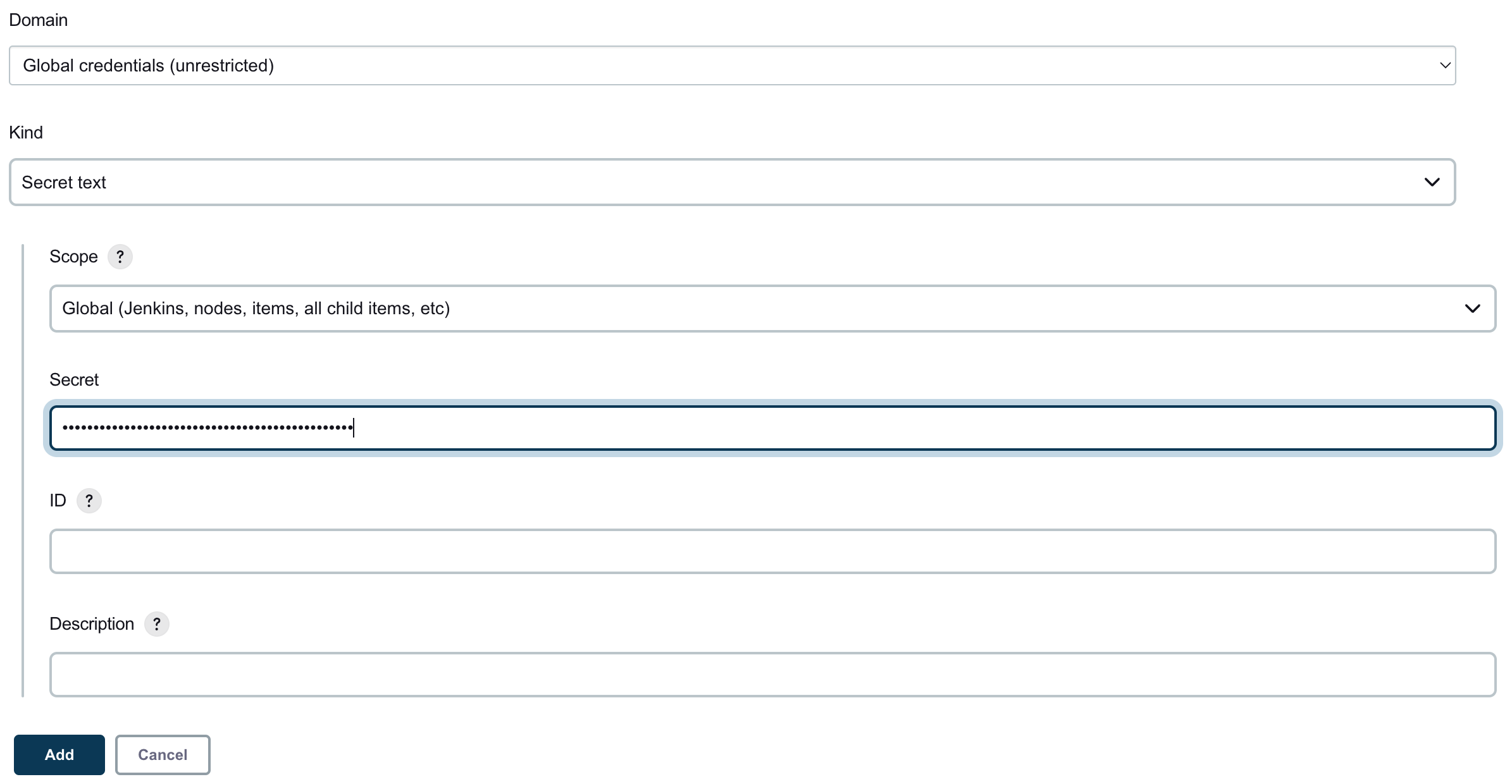 - Scope → Global (Jenkins, nodes, items, all child items, etc)를 입력 (고정)