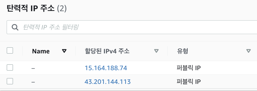- 따라서 그런 번거로움을 줄이고자 탄력적 IP를 사용하면 고정된 IP가 만들어져 해당 인스턴스들에게 연결만 시켜주면 된다.