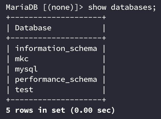 CREATE DATABASE mkc;