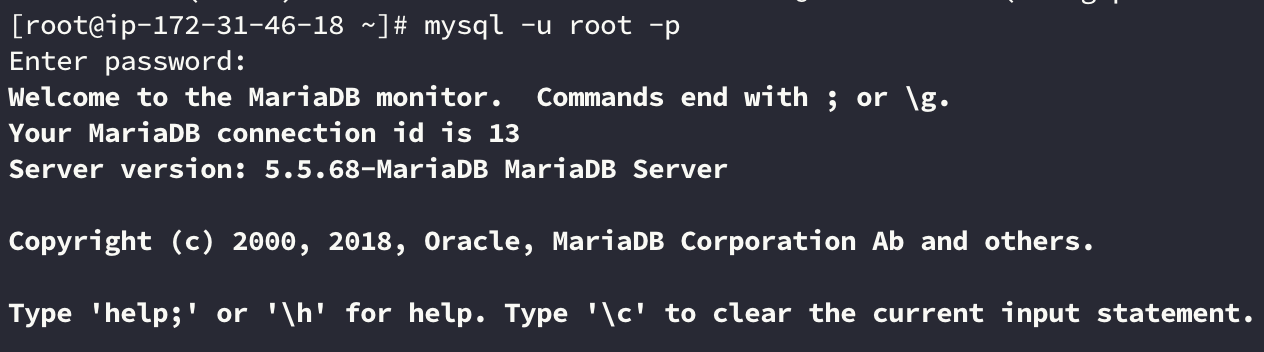 mysql -u root -p