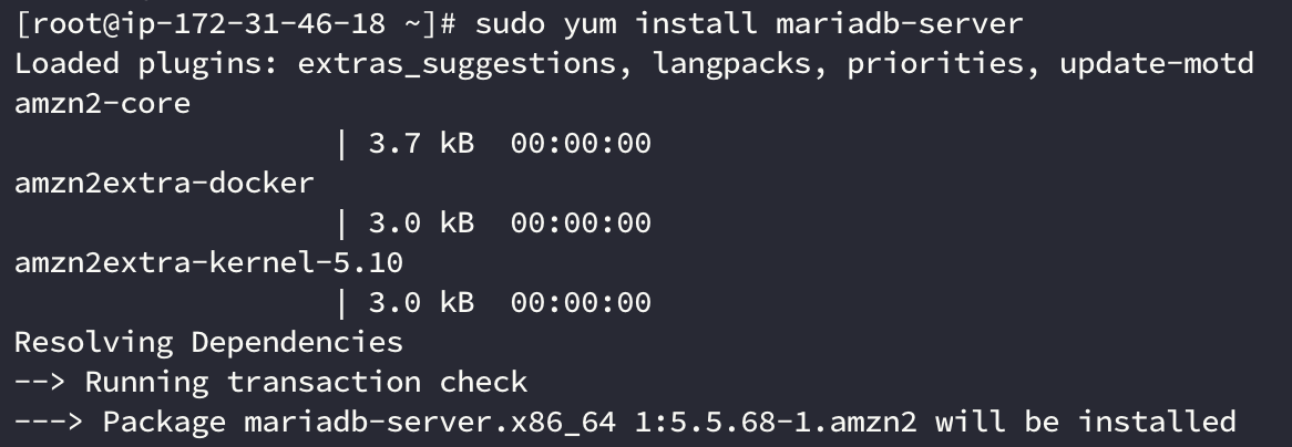 - sudo 권한으로 mariadb를 실행한다.