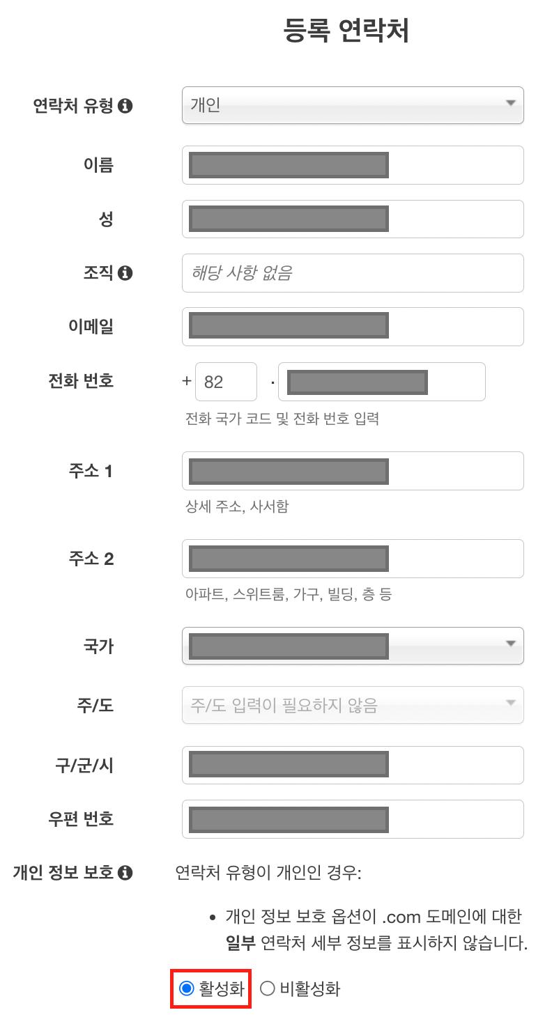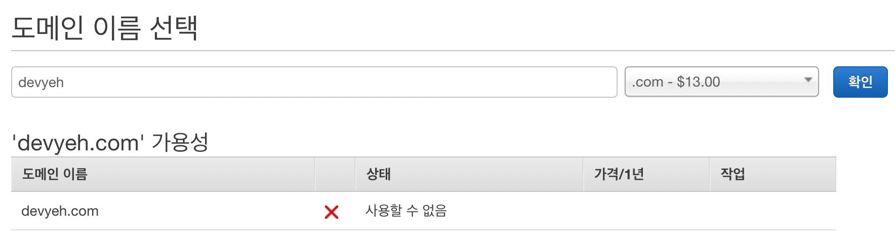 - 도메인 네임 선택에 내가 하고 싶은 도메인을 입력하면 된다. 여기서 도메인이란 www.도메인네임.com이 된다.