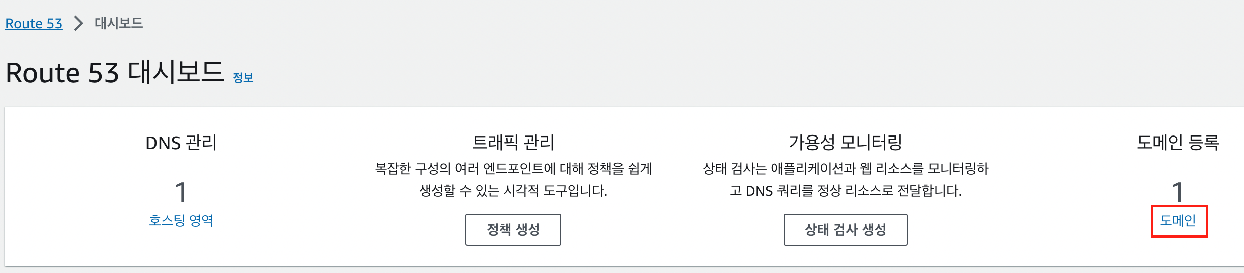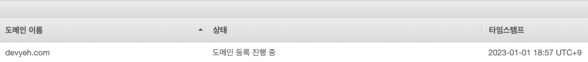 - 이제 Route 53 메인페이지에 오른쪽 탭 중 도메인 → 등록된 도메인 페이지에 가면 도메인 등록이 진행되고 있는 것을 볼 수 있다.