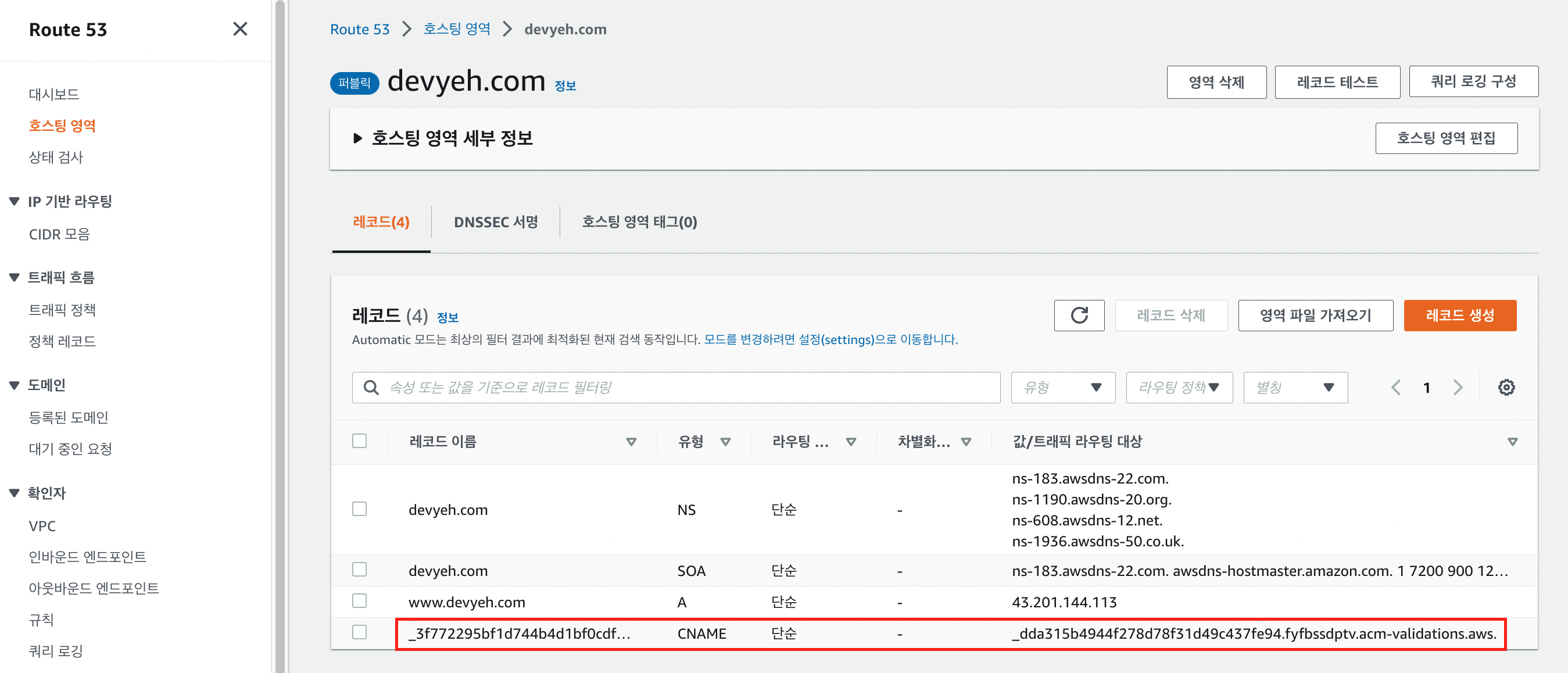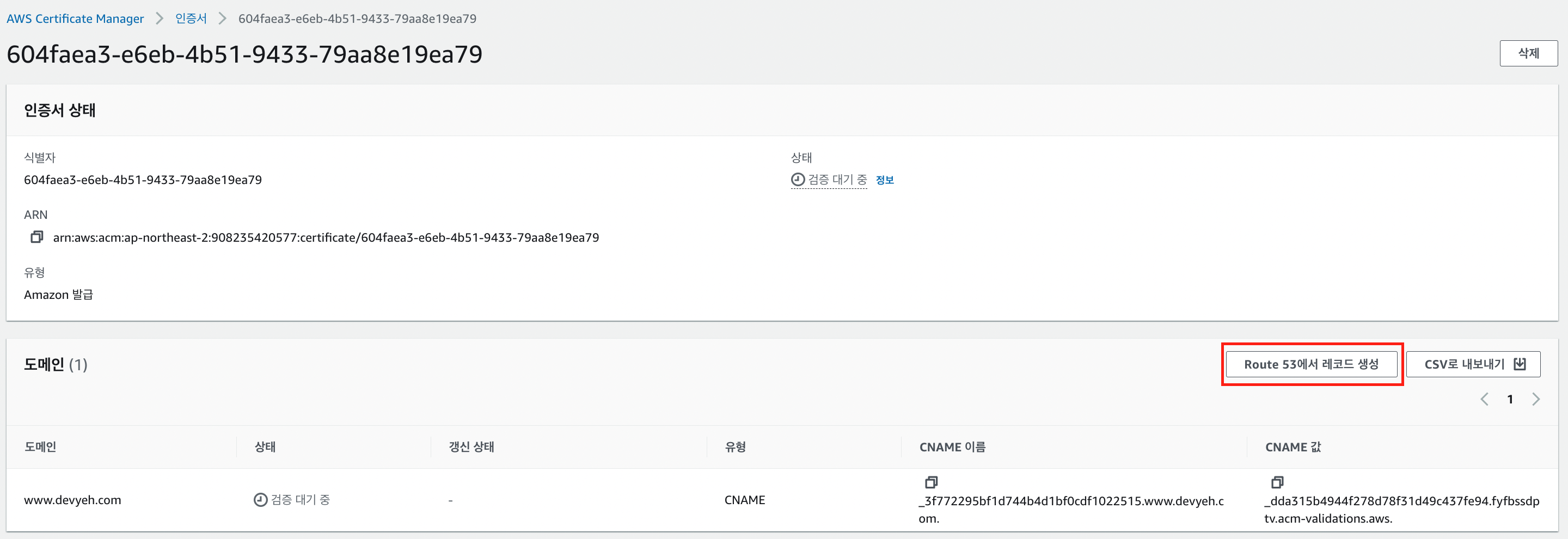 - 기존에는 인스턴스를 하나하나 적용했어야 했던 SSL을 Route 53(도메인 네임을 설정한 곳)을 통해 하나의 인증서로 여러 인스턴스에서 사용이 가능하다.