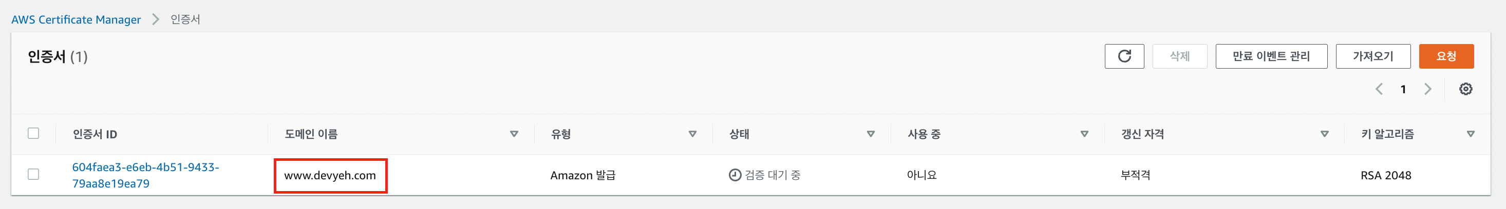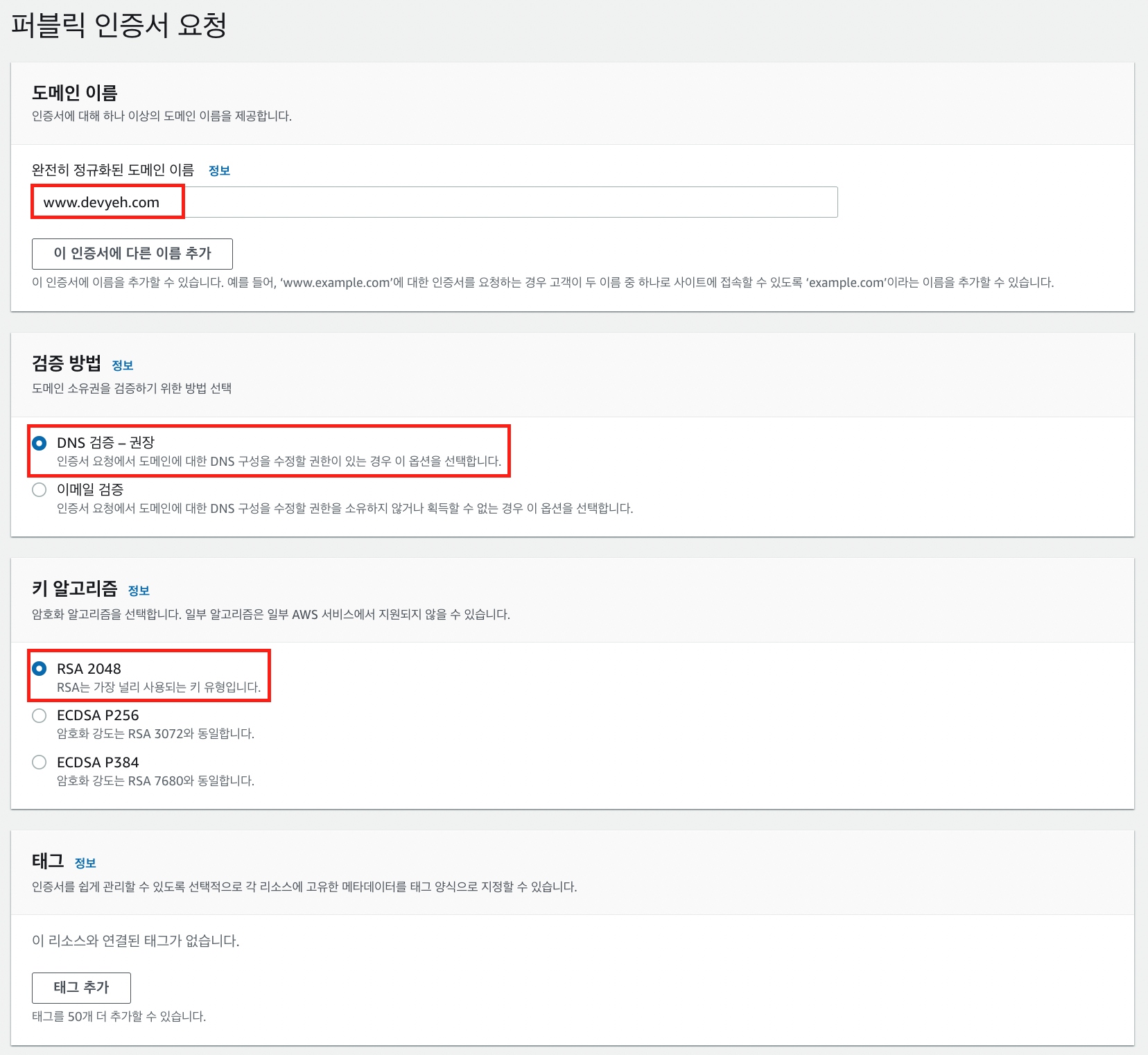 - 퍼블릭 인증서 요청에 해당 부분을 작성한다.